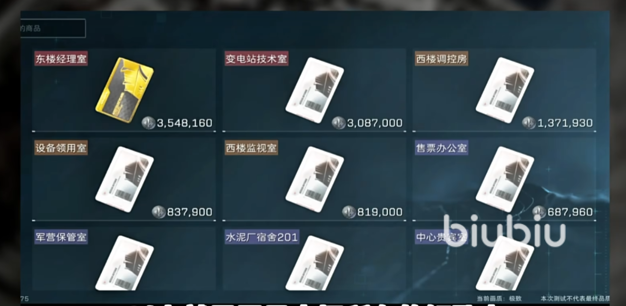 首要假如你是行政楼猛攻玩家,那么有两张钥匙卡引荐你买,一张是西楼调控房,一张是设备领用室。由于这两张是唯二能够终究靠玻璃,提早看钥匙房内是否有刷大红大金的钥匙卡。关于这两个钥匙卡,你能够不开,但你不能没有。如果里边刷大红了,而你刚好没这俩钥匙,别提有多难受了。